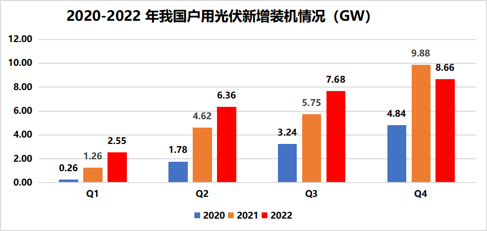 中國(guó)粉體網(wǎng)訊 2月17日,國(guó)家能源局發(fā)布2022年光伏發(fā)電建設(shè)運(yùn)行情況,2022年我國(guó)光伏新增裝機(jī)87.41GW,其中集中式光伏電站36.3GW,分布式光伏51.11GW。戶用分布式光伏新增裝機(jī)25.25GW,同比增長(zhǎng)17.3%。
