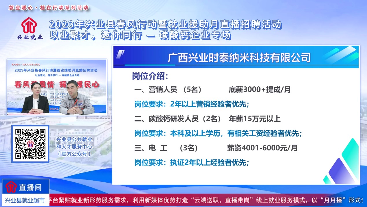 招兵買(mǎi)賣(mài):興業(yè)縣舉辦“碳酸鈣企業(yè)專(zhuān)場(chǎng)“直播帶崗招聘活動(dòng)