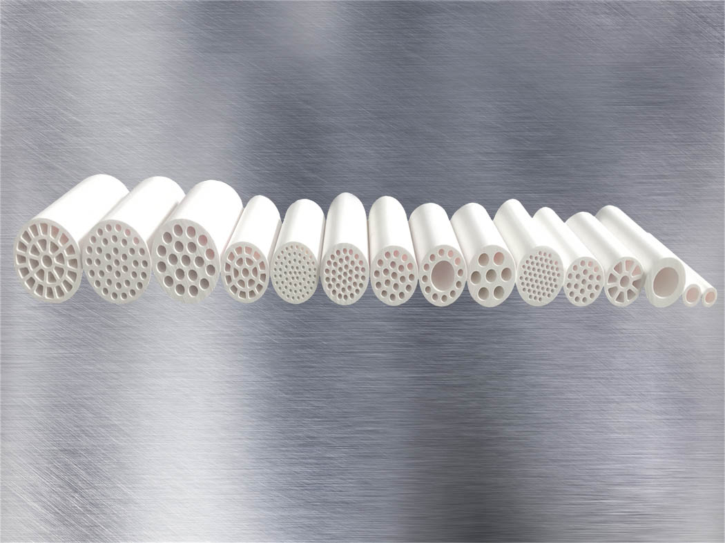 陶瓷膜管是以無(wú)機(jī)陶瓷材料經(jīng)特殊工藝制備而形成的非對(duì)稱(chēng)膜。管式陶瓷膜管壁密布微孔,在壓力作用下,原料液在膜管內(nèi)或膜外側(cè)流動(dòng),小分子物質(zhì)(或液體)透過(guò)膜,大分子物質(zhì)(或固體)被膜截留,從而達(dá)到分離、濃縮、純化和環(huán)保等目的。陶瓷膜具有分離效率高、效果穩(wěn)定、化學(xué)穩(wěn)定性好、耐酸堿、耐有機(jī)溶劑、耐菌、耐高溫、抗污染、機(jī)械強(qiáng)度高、再生性能好、分離過(guò)程簡(jiǎn)單、能耗低、操作維護(hù)簡(jiǎn)便、使用壽命長(zhǎng)等眾多優(yōu)勢(shì),已經(jīng)成功應(yīng)用于食品、飲料、植(藥)物深加工、生物醫(yī)藥、發(fā)酵、精細(xì)化工等眾多領(lǐng)域,可用于工藝過(guò)程中的分離、澄清、純化、濃縮、除菌、除鹽等。