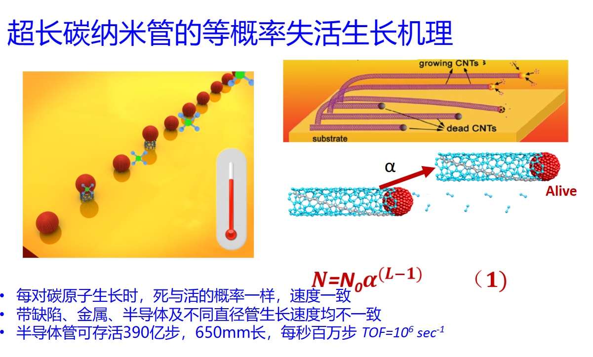 碳納米管是由于其高的比表面積、化學(xué)穩(wěn)定性及導(dǎo)熱、導(dǎo)電特性近年來發(fā)展十分迅速的納米材料。本報(bào)告首先對(duì)碳納米管的可控生長進(jìn)行了研究,發(fā)現(xiàn)可在TOF達(dá)106 1/s條件下實(shí)現(xiàn)半米長碳納米管的無缺陷生長,這一生長過程符合最可幾失活關(guān)系。并可得到強(qiáng)度高于80GPa的碳納米管高強(qiáng)纖維束?衫眠@種完美結(jié)構(gòu)的碳納米管進(jìn)行單碳碳鍵斷裂的檢測(cè)及皮牛級(jí)力的測(cè)量。通過對(duì)納米金屬催化劑底部生長機(jī)制的認(rèn)識(shí),設(shè)計(jì)了層狀介孔單晶材料穩(wěn)定金屬的方法,制備出了陣列碳納米管、碳納米管雙螺旋結(jié)構(gòu)及石墨烯碳納米管雜化物,并對(duì)批量制備不同類型的碳材料進(jìn)行了分析。最后對(duì)于碳納米材料在傳感、超級(jí)電容、鋰電池等方面的應(yīng)用進(jìn)行了介紹。