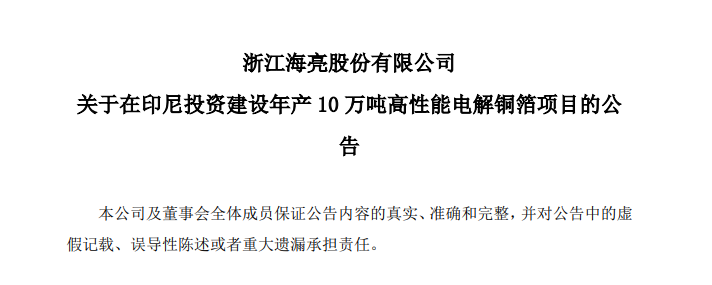 中國粉體網(wǎng)訊 2月27日晚,海亮股份公告,公司當(dāng)日召開第八屆董事會第五次會議,審議通過了在印尼投資建設(shè)年產(chǎn)10萬噸高性能電解銅箔項目的議案。