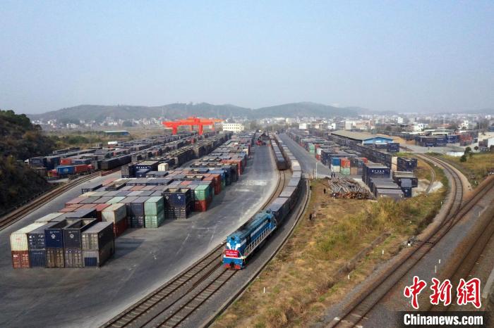 班列從賀州市鐘山鐵路貨場開往湛江站