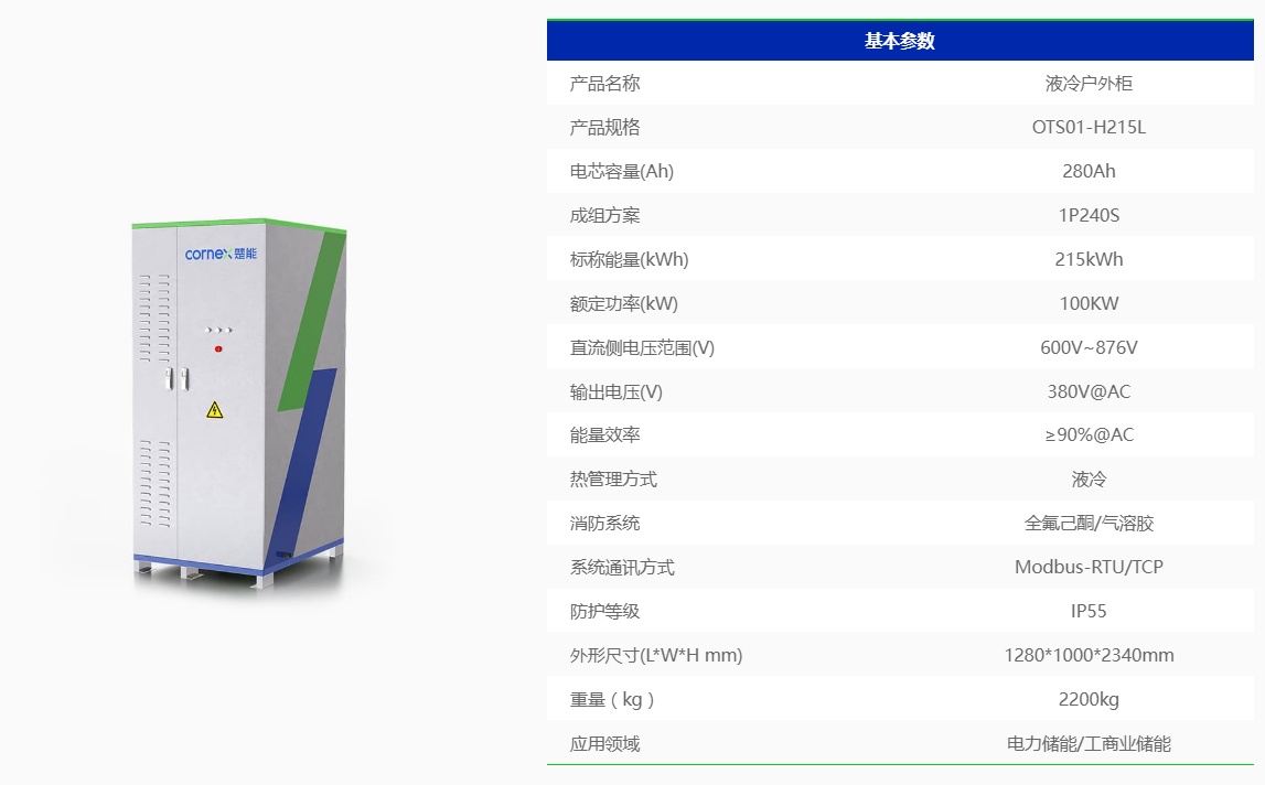 工商業(yè)儲(chǔ)能產(chǎn)品液冷戶外柜OTS01-H215L。