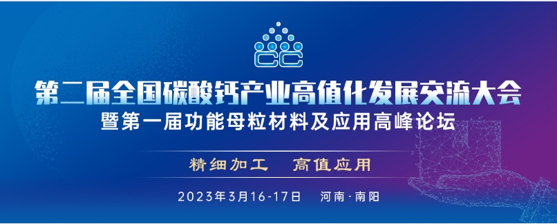 由中國粉體網(wǎng)的舉辦“2023第二屆全國碳酸鈣產(chǎn)業(yè)高值化發(fā)展交流大會(huì)暨第一屆功能母粒材料及應(yīng)用高峰論壇”,定于2023年3月16-17日在河南南陽世紀(jì)星假日酒店舉行。
