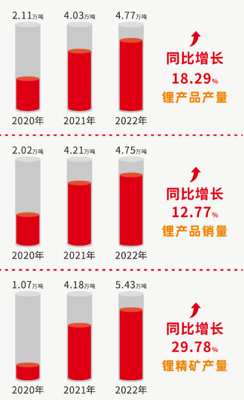 鋰產(chǎn)品產(chǎn)銷兩旺,鋰精礦產(chǎn)出5.43萬噸,庫存結(jié)余699.2噸。