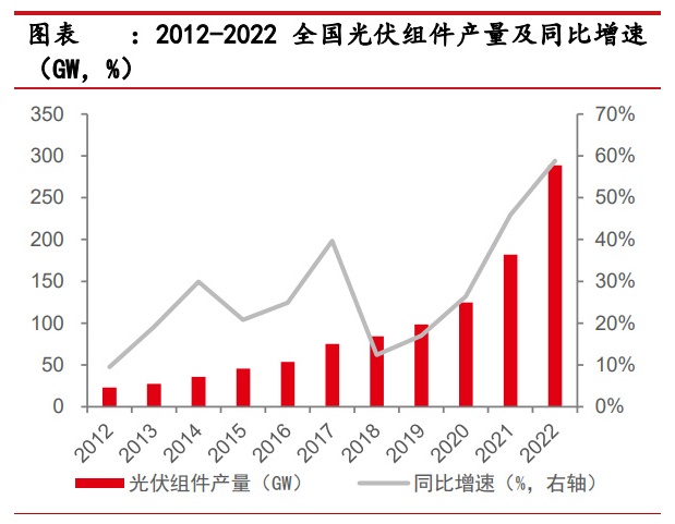 受益于光伏產(chǎn)業(yè)的迅速發(fā)展,光伏玻璃產(chǎn)量及消費量整體上呈快速增長態(tài)勢。從制造端來看,2022 年,全國光伏組件產(chǎn)量為 288.7 GW,同比增長 58.8%。