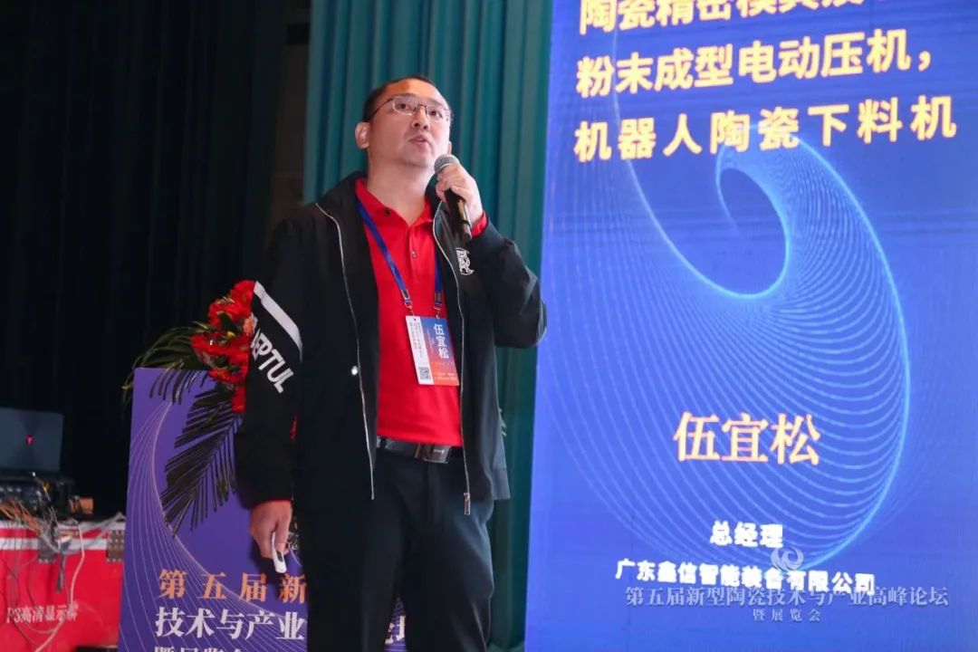 廣東鑫信智能裝備有限公司總經(jīng)理伍宜松作《陶瓷精密模具及 CNC 粉末成型電動(dòng)壓機(jī),機(jī)器人陶瓷下料機(jī)》報(bào)告