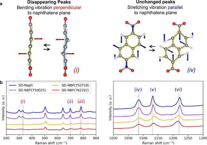 圖6.在嵌鋰過程中,骨架的振動(dòng)模式。a使用第一性原理計(jì)算,由聲子預(yù)測的代表性振動(dòng)模式。灰色、紅色和粉色球體分別代表C、O和H。b每個(gè)完全鋰化樣品的拉曼光譜