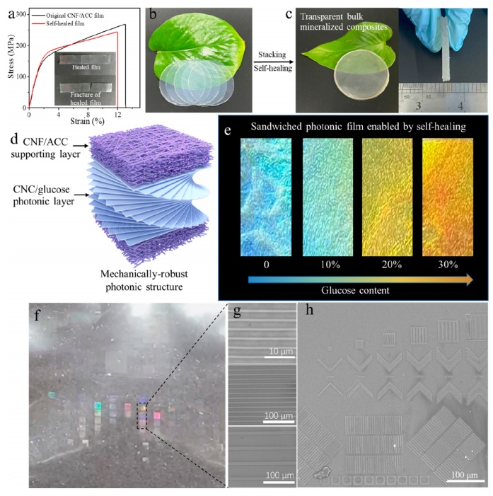 圖3 CNF/ACC復(fù)合材料的自愈合性能及表面微納米圖案化。