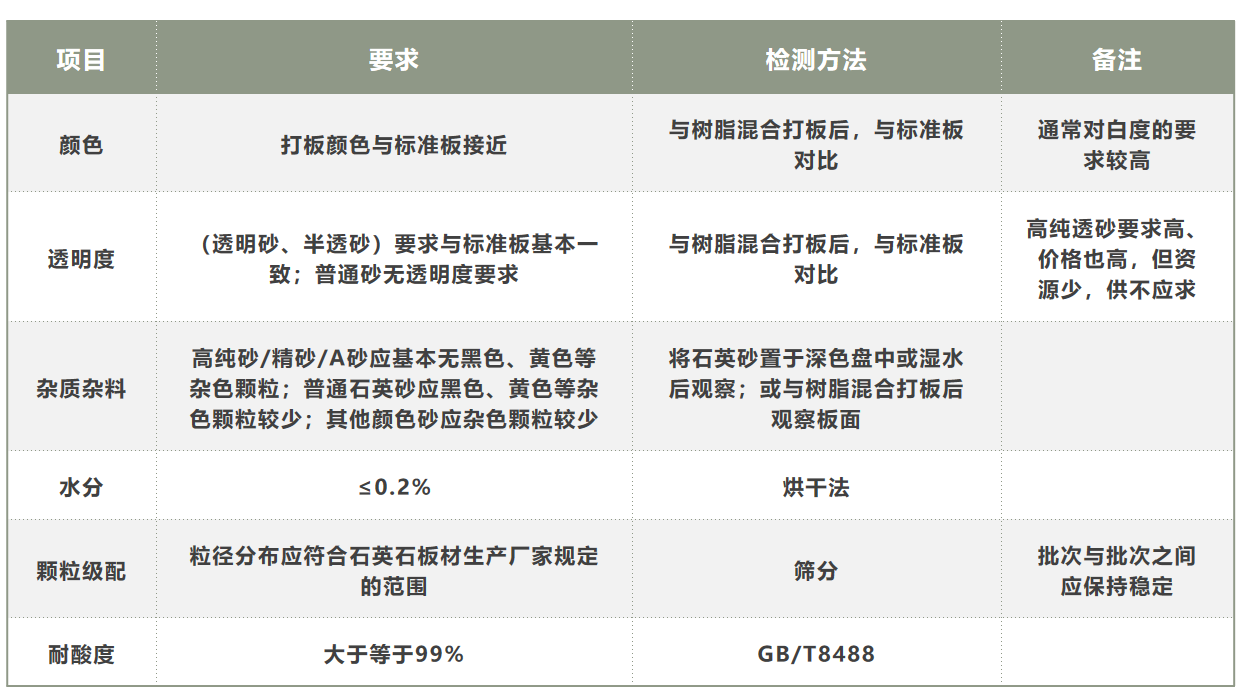 石英石板材對石英砂的質(zhì)量要求
