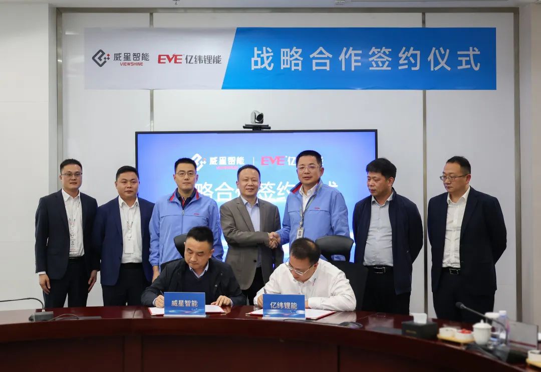 威星智能總裁黃華兵、江西賽酷總經(jīng)理王迎春、威星智能總裁助理兼采購(gòu)部總經(jīng)理吳正祥、億緯鋰能總裁劉建華、副總裁何盈深、鋰電池銷售中心總經(jīng)理易杰輝等領(lǐng)導(dǎo)出席簽約儀式。