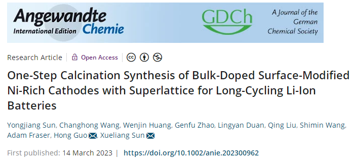 近日,云南大學(xué)材料與能源學(xué)院(云南大學(xué)電鏡中心)郭洪教授團(tuán)隊(duì)采用一步法合成了具有體相摻雜、亞表面超晶格和表面鋰離子導(dǎo)體修飾的新型LiNi0.9Co0.09Mo0.01O2高鎳正極材料,相關(guān)研究成果以“One-Step Calcination Realizing Bulk-Doped Surface-Modified Ni-Rich Cathodes with Superlattice for Long-Cycling LIBs”為題發(fā)表在國(guó)際期刊Angew. Chem. Int. Ed.上。