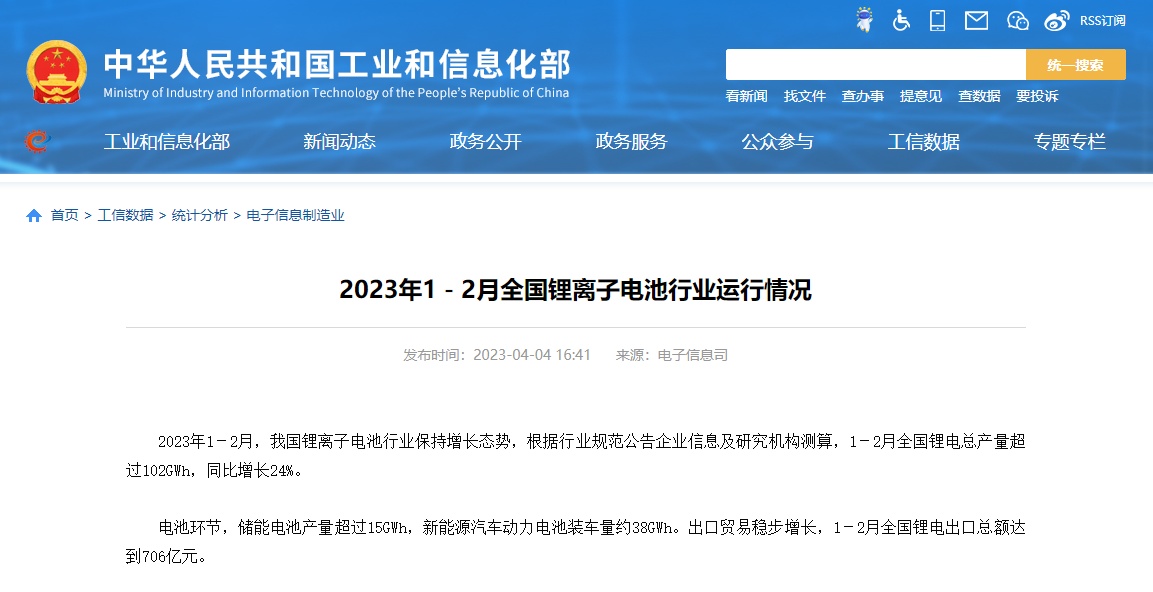 工信部:1-2月全國鋰電總產(chǎn)量超過102GWh,同比增長24%