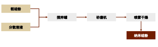目前納米硅粉的制備主要采用自上而下和自下而上的2種方法。前者是利用物理的方法使塊狀硅原料從大到小不斷地破碎達(dá)到需求的尺寸,后者是利用物理或者化學(xué)的方法對(duì)硅源材料進(jìn)行分解或者裂解,通過(guò)沉積的方法獲得所需尺寸的納米硅顆粒。研究較多得主要有化學(xué)氣相沉積法、等離子蒸發(fā)冷凝法和機(jī)械研磨法。由于國(guó)內(nèi)對(duì)納米硅粉研制起步較晚,制作水平相對(duì)落后,主要以機(jī)械研磨法為主。美國(guó),日本等國(guó)家的企業(yè)對(duì)納米硅粉的研究起步較早,日本帝人、美國(guó)杜邦等企業(yè)均可以用等離子蒸發(fā)冷凝法進(jìn)行納米硅粉的制備。