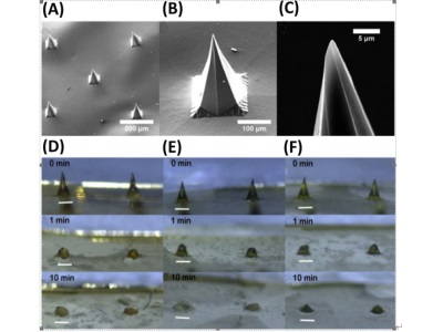 智能給藥裝置主要用于維持血液中的藥物濃度在較長時(shí)間內(nèi)保持恒定,因此可以降低給藥頻率,利用微流控技術(shù)可以實(shí)現(xiàn)智能的透皮給藥。如利用穿戴式微流控芯片進(jìn)行透皮給藥,即通過可穿戴的儲(chǔ)藥裝置結(jié)合微針或者微針陣列穿刺皮膚送藥,由于微針的外形長度精確可控,可以在穿刺皮膚時(shí)做到刺透皮膚表層的同時(shí)不觸及神經(jīng)層,實(shí)現(xiàn)無痛穿刺和精準(zhǔn)用量送藥。通過微針陣列與微流控芯片的配合,還能做到以微米甚至納米顆粒包裹藥物的形式進(jìn)行送藥(引自參考文獻(xiàn)1)。