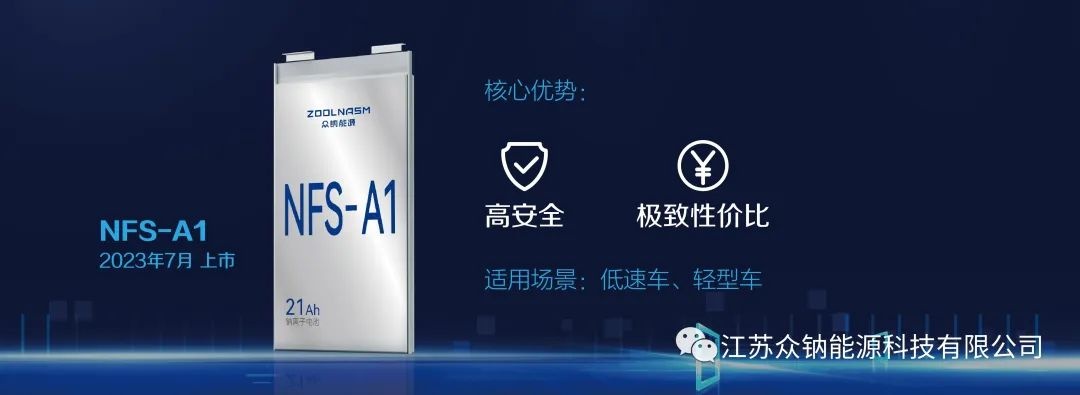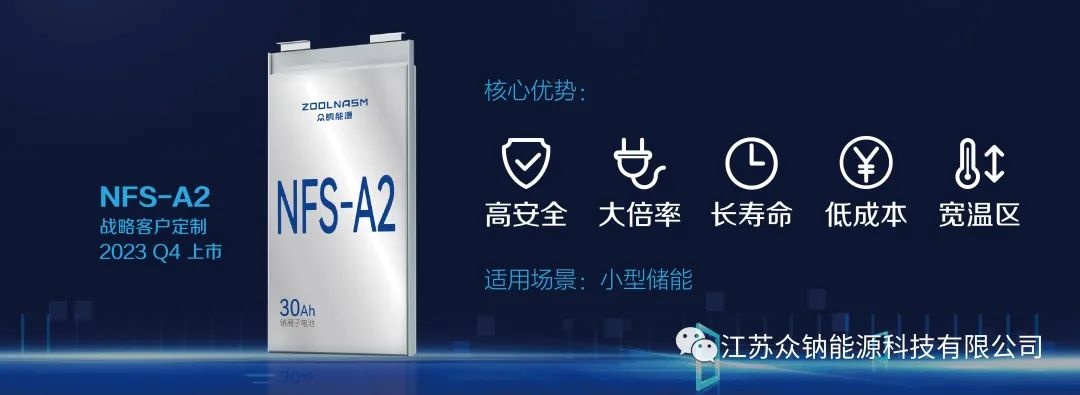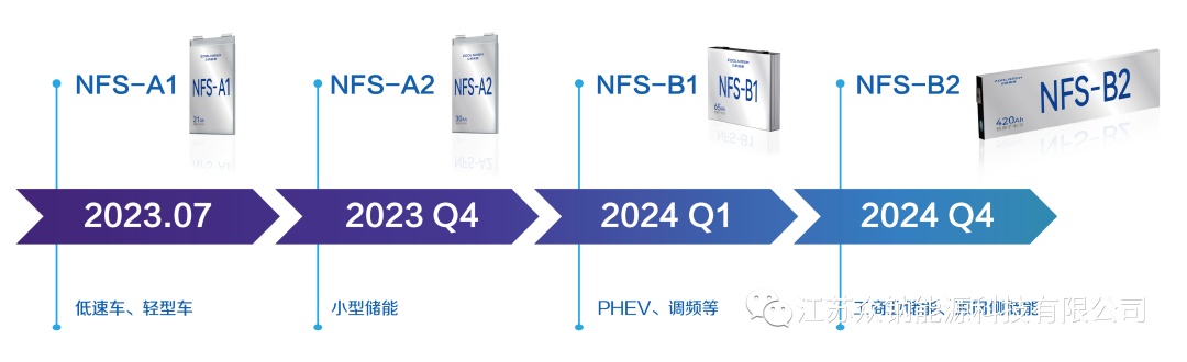 4月24日,眾鈉能源首次向外界展示了公司2023-2024產(chǎn)品序列。分別為:面向低速車(chē)/輕型車(chē)市場(chǎng)的軟包電芯NFS-A1、面向小型儲(chǔ)能市場(chǎng)的軟包電芯NFS-A2、面向PHEV/調(diào)頻市場(chǎng)的方殼電芯NFS-B1,面向工商儲(chǔ)/源網(wǎng)側(cè)儲(chǔ)能市場(chǎng)的方殼電芯NFS-B2。