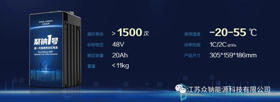 此外,總經(jīng)理夏剛還隆重發(fā)布了公司首款鈉電解決方案聚鈉1號(hào)。聚鈉1號(hào)搭載NFS-A1軟包電芯,是眾鈉能源踐行“持續(xù)向全球提供豐富的鈉電解決方案”的企業(yè)愿景,面向低速車(chē)、輕型車(chē)市場(chǎng)推出的第一款產(chǎn)品。