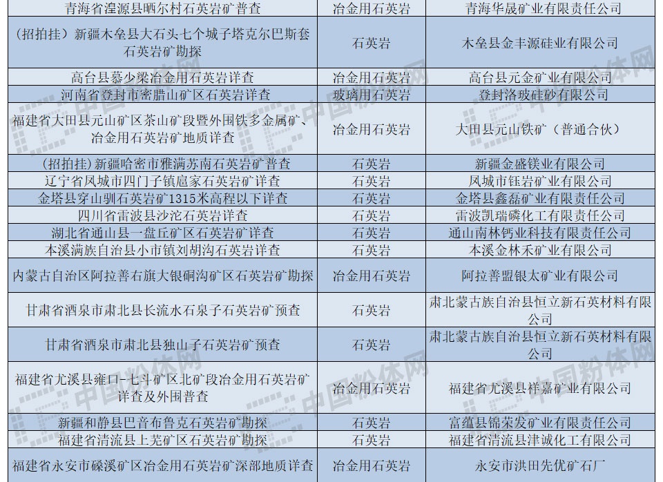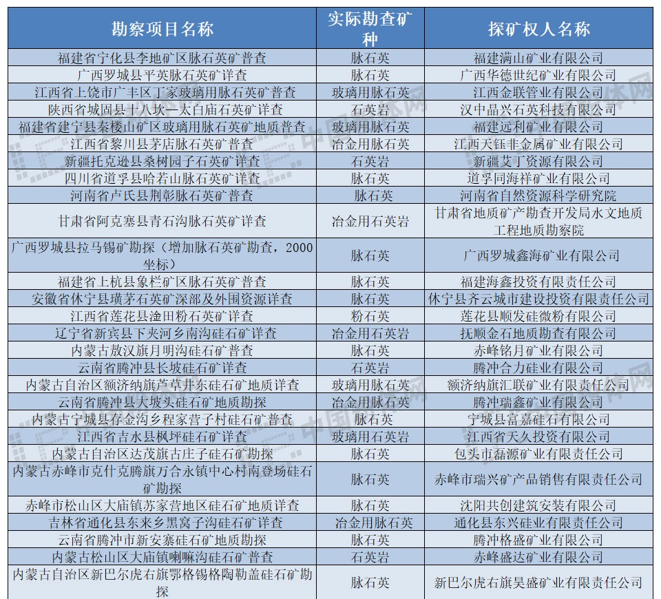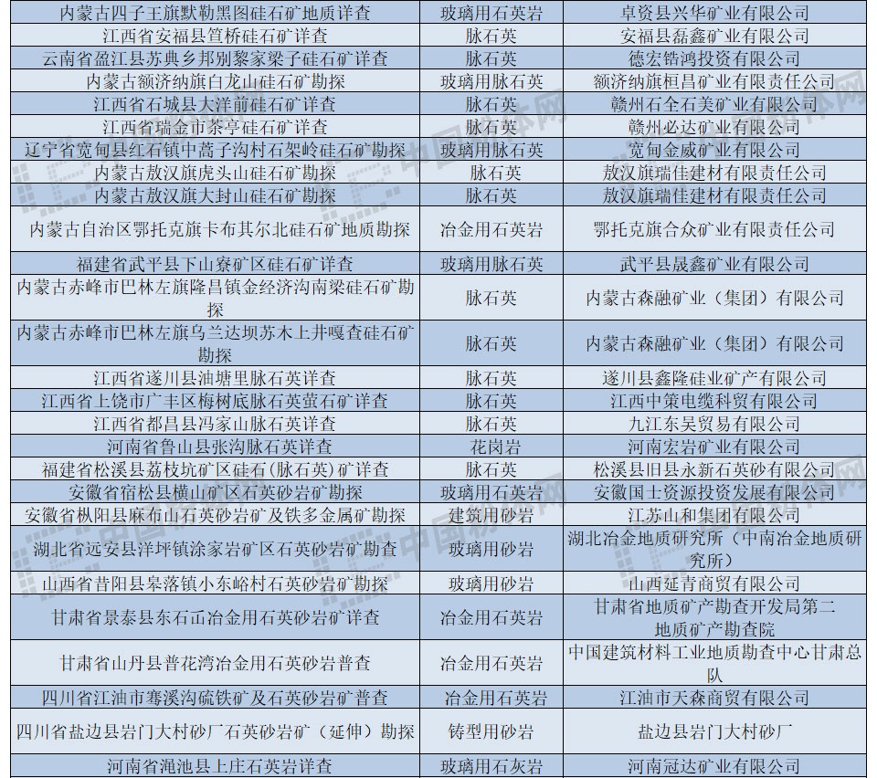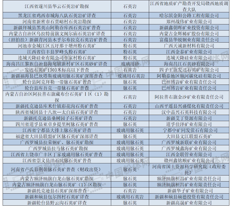 國內(nèi)勘察中的石英資源