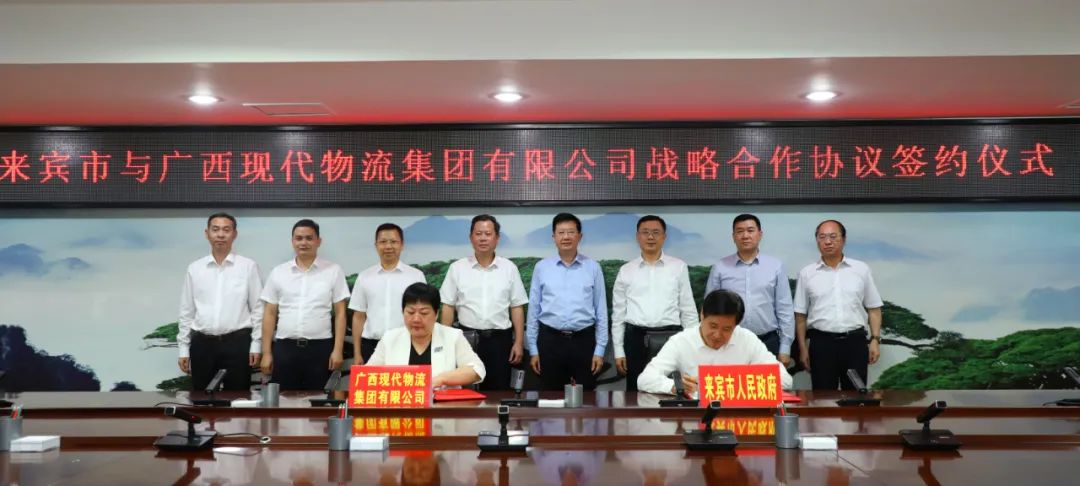 簽約儀式上,來賓市市委常委、副市長田暉和廣西現(xiàn)代物流集團(tuán)副總經(jīng)理潘雪紅,分別代表來賓市人民政府和廣西現(xiàn)代物流集團(tuán)有限公司進(jìn)行簽約。