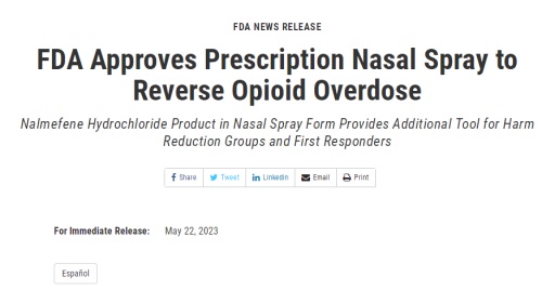 中國(guó)粉體網(wǎng)訊 5月22日,美國(guó)食品和藥物管理局(FDA)批準(zhǔn)處方藥, Indivior的納美芬鼻噴劑(商品名OPVEE®)上市,用于成年人和12歲以上青少年阿片類(lèi)藥物過(guò)量的緊急治療。阿片類(lèi)藥物過(guò)量表現(xiàn)為呼吸抑制和中樞神經(jīng)系統(tǒng)抑制。本次批準(zhǔn)基于藥效學(xué)研究證實(shí)OPVEE可以快速逆轉(zhuǎn)呼吸抑制。OPVEE預(yù)計(jì)將于2023年第四季度上市。