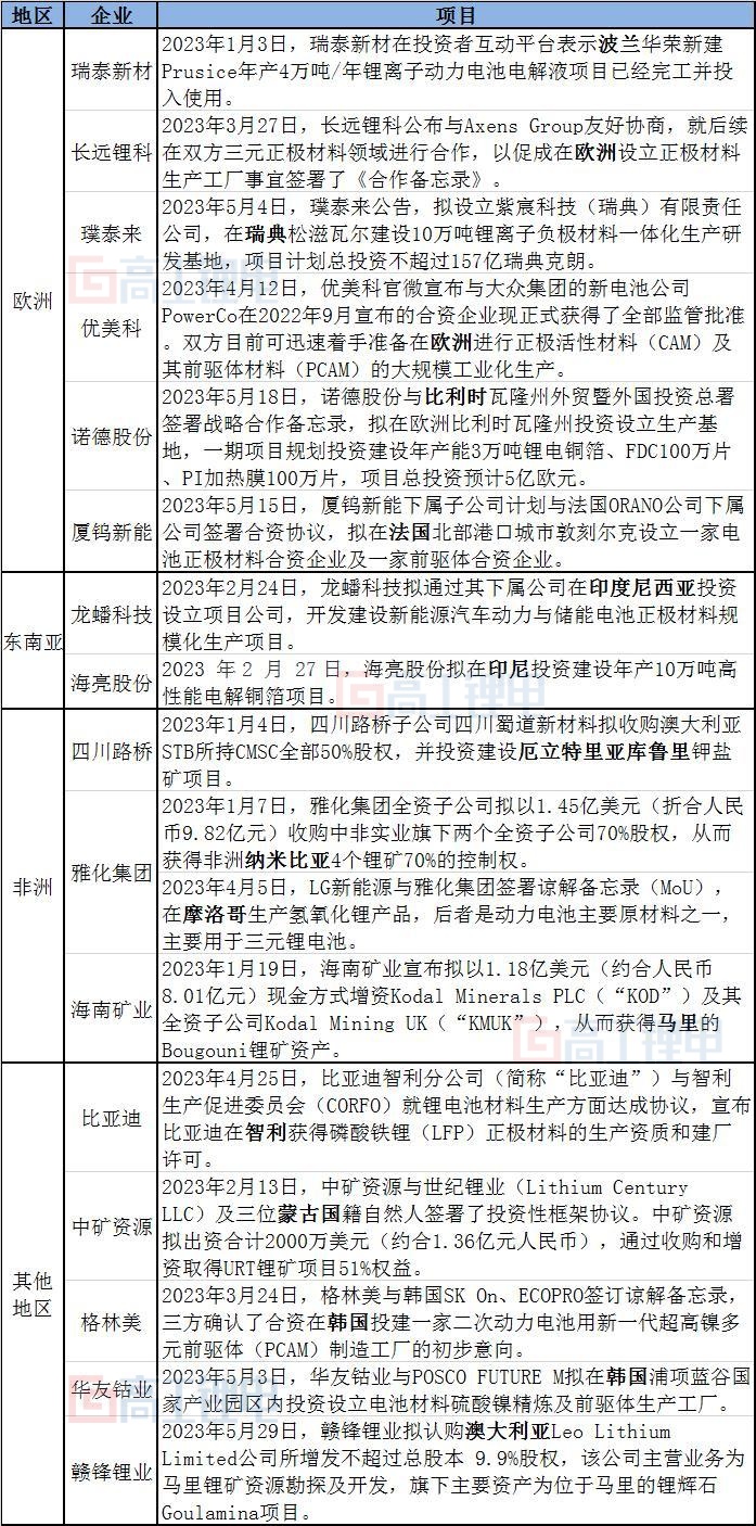 在動力電池企業(yè)不斷加大海外市場的布局的背景下,材料企業(yè)將工廠設立在這些地區(qū),能夠有效滿足下游客戶供應鏈管理及訂單需求。