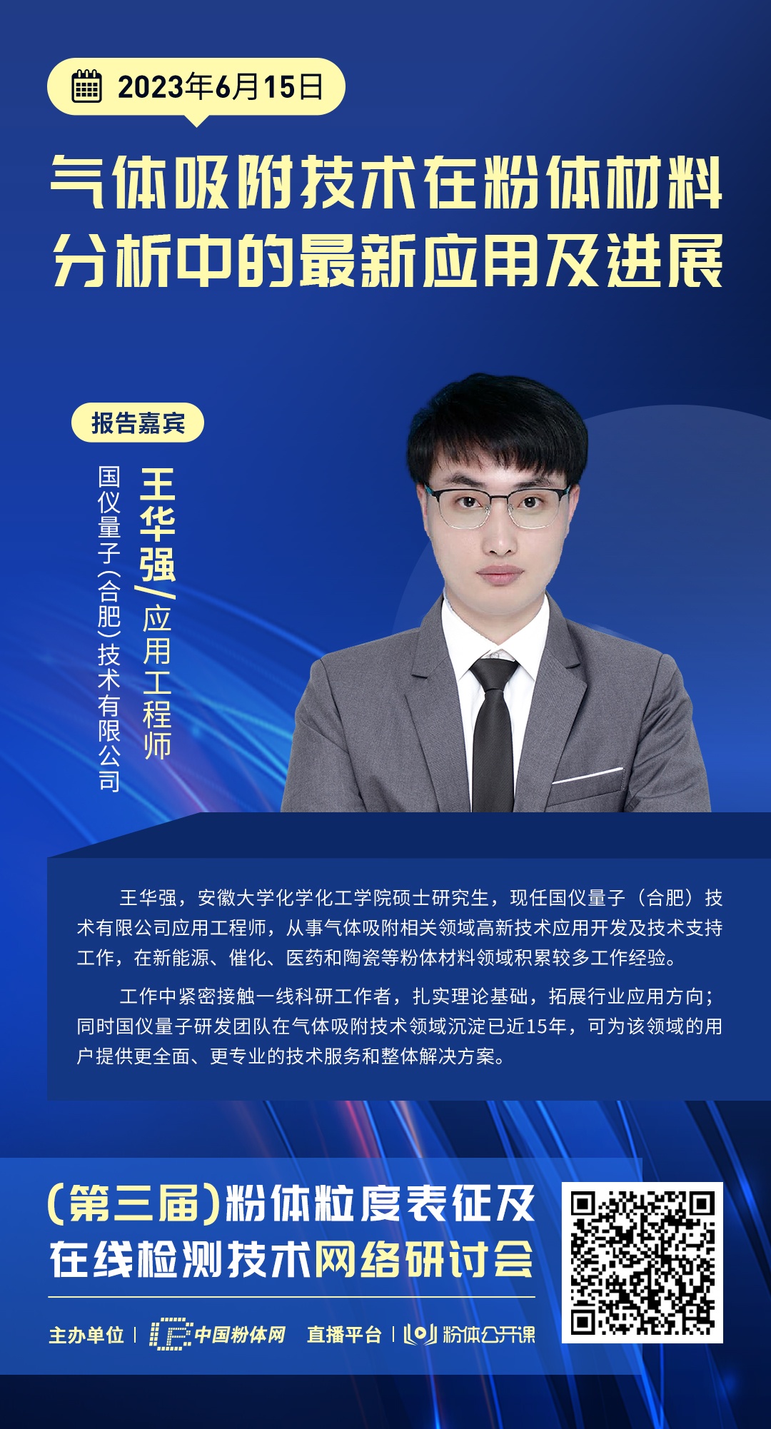 此次直播特邀國儀量子(合肥)技術(shù)有限公司王華強應(yīng)用工程師做報告:氣體吸附技術(shù)在粉體材料分析中的最新應(yīng)用及進(jìn)展