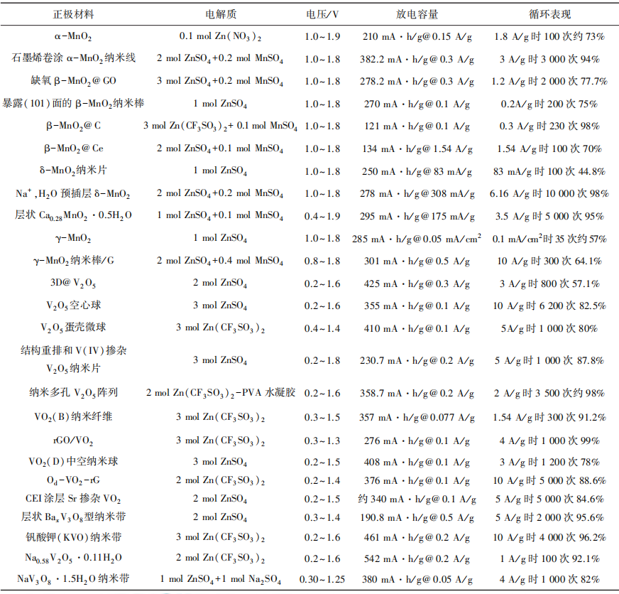 水系鋅離子電池不同正極材料的性能總結(jié)(來源:楊文博等,《水系鋅離子電池正極材料研究現(xiàn)狀與展望》)