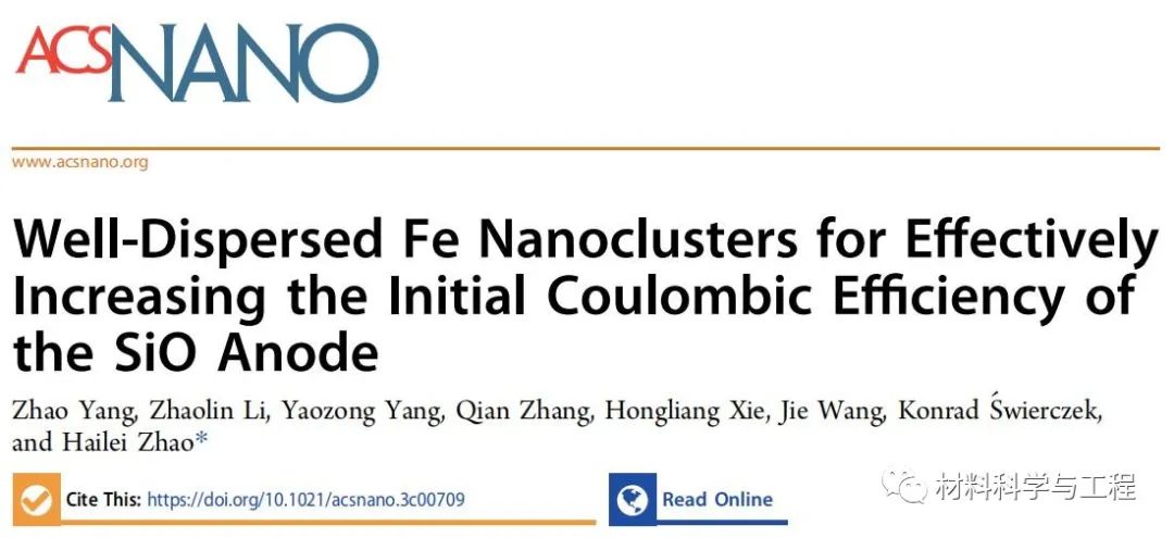 中國粉體網(wǎng)訊 北京科技大學(xué)趙海雷教授團隊提出了一種有效的表面改性策略,以顯著提高SiO負(fù)極材料的首次庫侖效率(ICE)。通過化學(xué)氣相沉積法在SiO表面均勻包覆Fe納米團簇成功制備了SiO@Fe負(fù)極材料,分散良好的Fe納米團簇實現(xiàn)了與不可逆鋰化產(chǎn)物硅酸鋰的歐姆接觸,有效地降低了電子傳導(dǎo)勢壘,并促進了硅酸鋰在脫鋰過程中的鋰離子釋放,提高了SiO負(fù)極的首次庫侖效率。相比原始SiO64.4%的首次庫倫效率,制備的SiO@Fe表現(xiàn)出87.2%的首次庫倫效率,除了預(yù)鋰化外,這種增量(23%)是從未報道過的,并且顯著增強了循環(huán)和倍率性能。這些發(fā)現(xiàn)提供了一種將“惰性”相轉(zhuǎn)化為“活性”相的有效方法,從而增加電極的首次庫侖效率。相關(guān)研究成果以“Well-Dispersed Fe Nanoclusters for Effectively Increasing the Initial Coulombic Efficiency of the SiO Anode”為題發(fā)表在ACS Nano上。