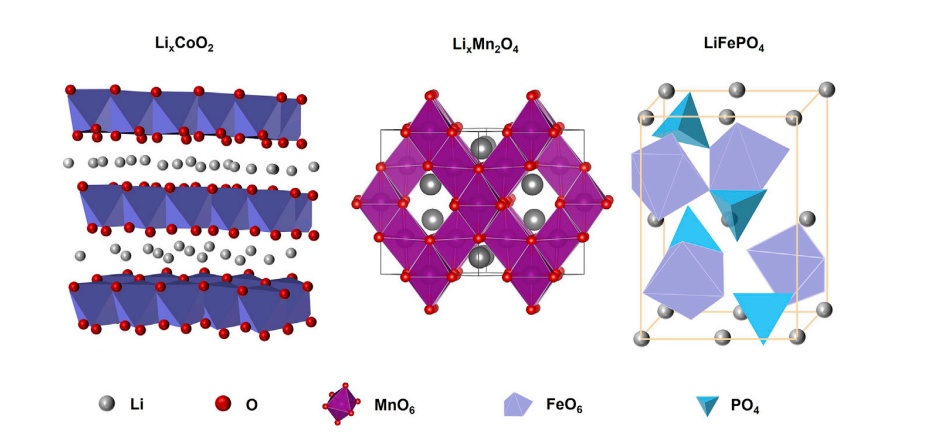 鈷酸鋰、錳酸鋰和磷酸鐵鋰正極材料的晶體結(jié)構(gòu)