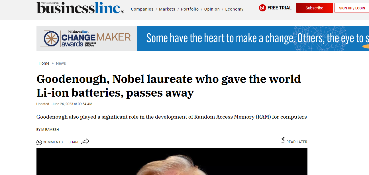 中國(guó)粉體網(wǎng)訊 6月26日,據(jù)外媒報(bào)道,鋰離子電池的共同發(fā)明者、2019年諾貝爾化學(xué)獎(jiǎng)得主John Bannister Goodenough于2023年6月去世,享年100歲。Goodenough去世的消息得到了他的學(xué)生NicholasGrundish的確認(rèn)。