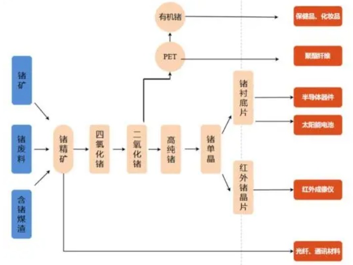 鍺生產(chǎn)鏈條示意圖,來源:東方財富證券