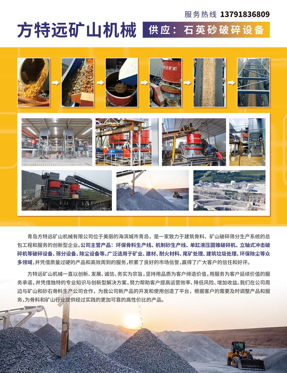 由中國(guó)粉體網(wǎng)主辦的“2023第三屆全國(guó)板材用石英砂供需洽談會(huì)”將于7月19號(hào)在山東臨沂舉辦,青島方特遠(yuǎn)礦山機(jī)械有限公司邀您一同參加。