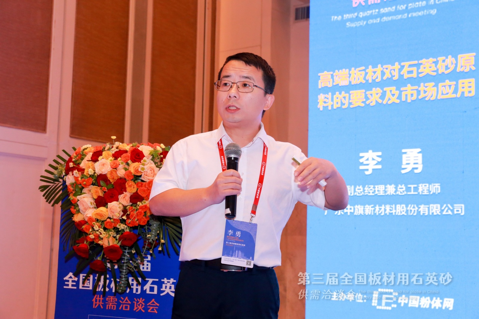 廣東中旗新材料股份有限公司副總經(jīng)理兼總工程師李勇作《高檔板材對石英砂原料的要求及市場應(yīng)用》報(bào)告