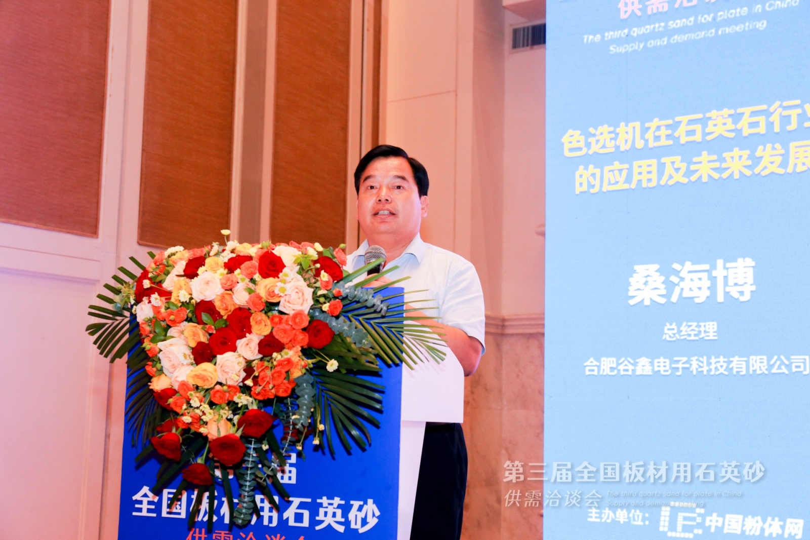 合肥谷鑫電子科技有限公司總經(jīng)理桑海博作《色選機(jī)在石英石行業(yè)的應(yīng)用及未來發(fā)展》報(bào)告
