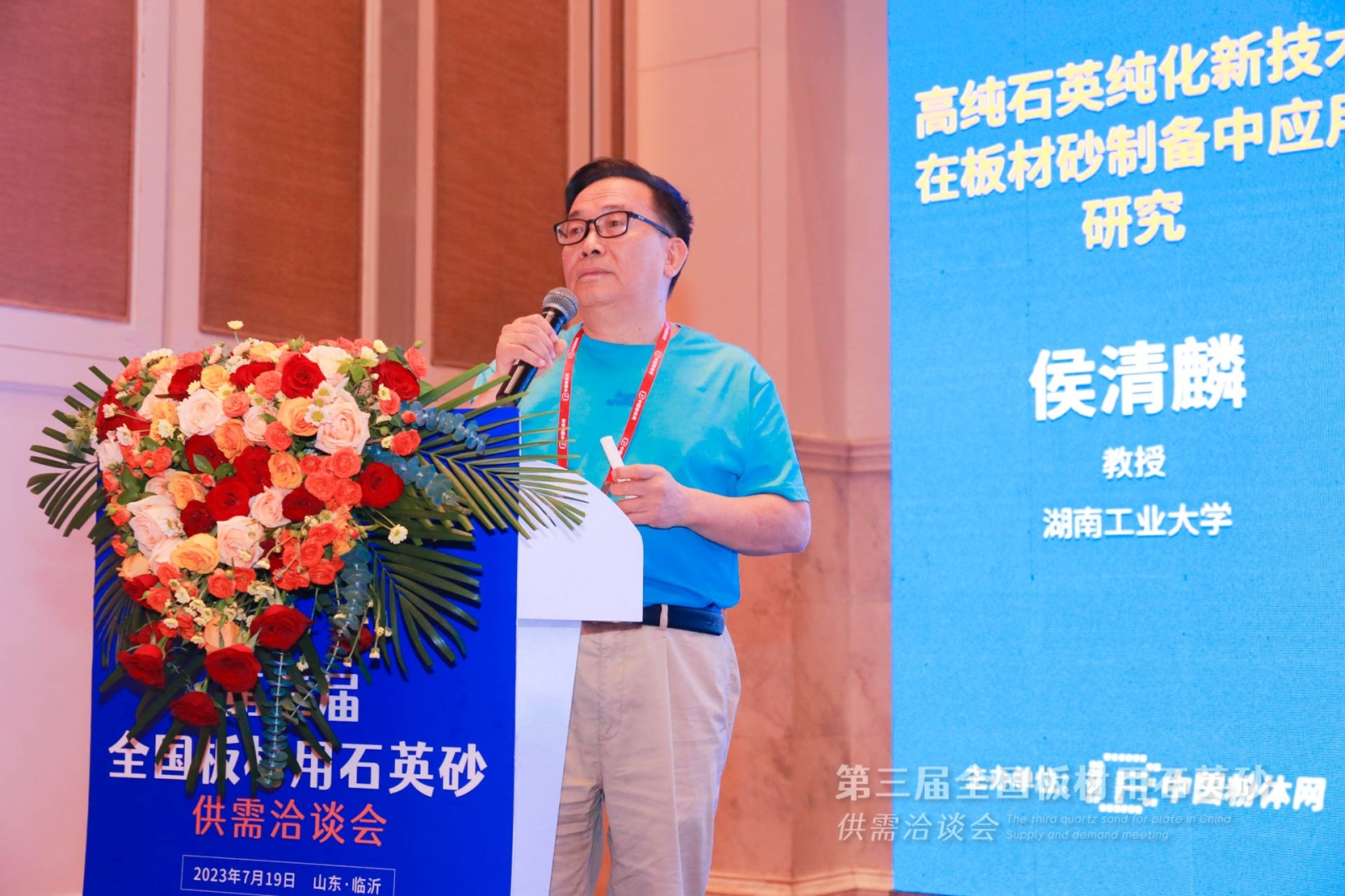 湖南工業(yè)大學(xué)教授侯清麟作《高純石英純化新技術(shù)在板材砂制備中應(yīng)用研究》報(bào)告