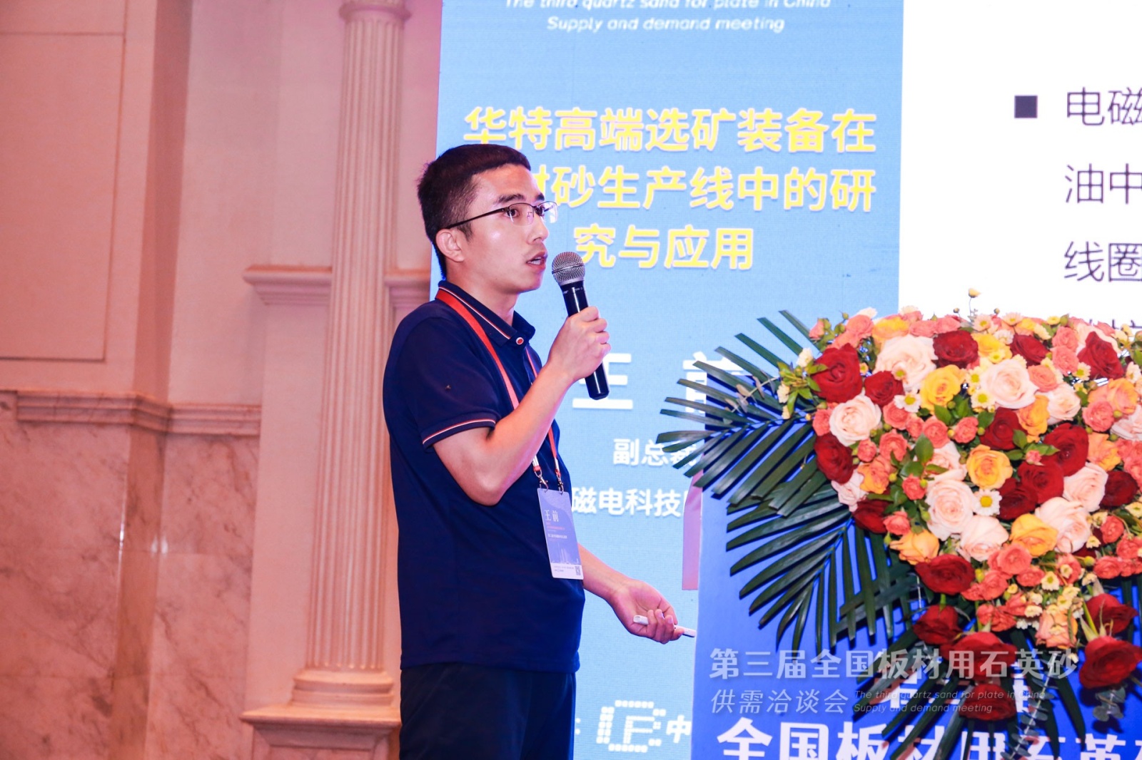 山東華特磁電科技股份有限公司副總裁/博士/正高級工程師王前(安峰文博士代)作《華特高端選礦裝備在板材砂生產(chǎn)線中的研究與應(yīng)用》報(bào)告