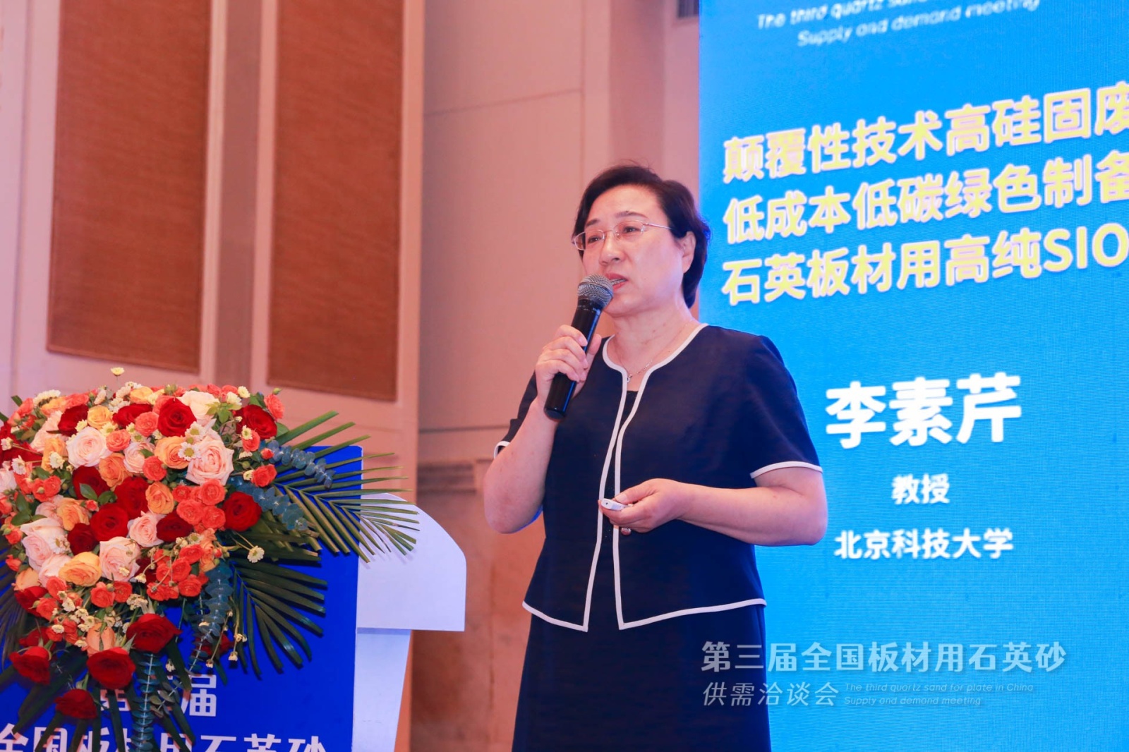 北京科技大學(xué)李素芹教授作《顛覆性技術(shù)高硅固廢低成本低碳綠色制備石英板材用高純SiO2》報(bào)告
