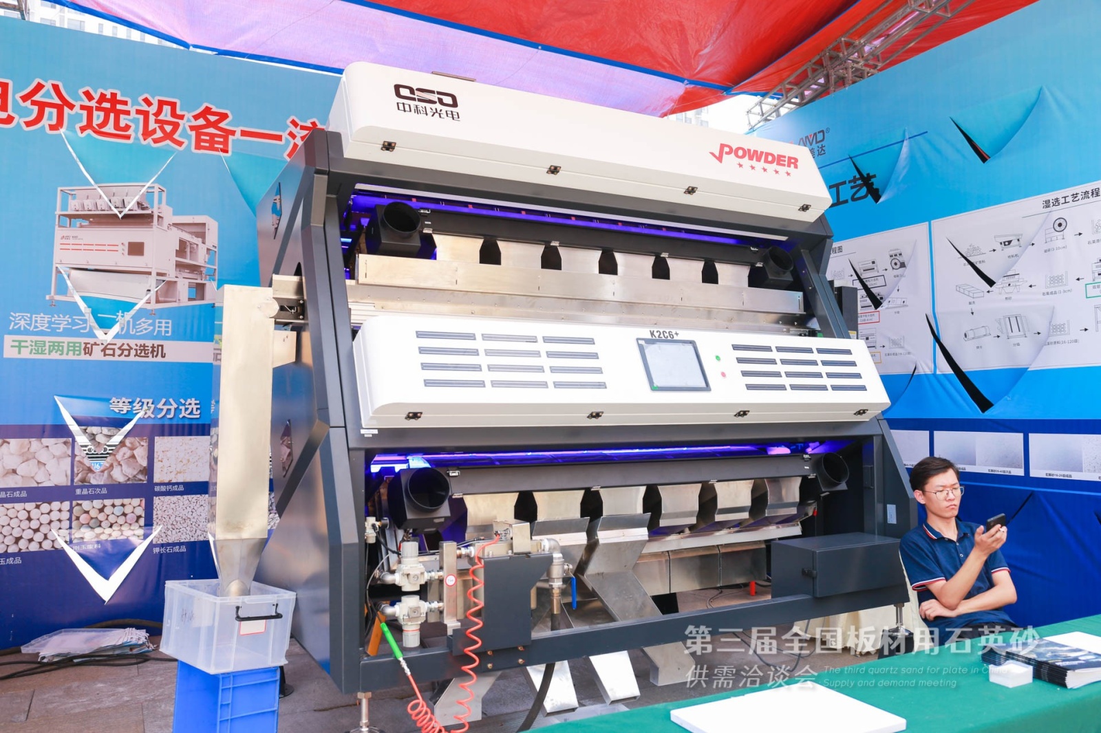 桑海博總經(jīng)理首先介紹了色選機(jī)在石英石行業(yè)的應(yīng)用范圍、色選機(jī)選石英礦的優(yōu)勢、色選機(jī)在石英礦選礦的工藝流程、干選和濕選的區(qū)別,接下來對合肥谷鑫電子科技有限公司的產(chǎn)品、產(chǎn)品優(yōu)勢作了簡單介紹,最后,?偡窒砹丝蛻舭咐肮緲s譽(yù)等。