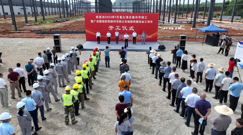 中國粉體網(wǎng)訊 7月20日,來賓市2023年7月重大項(xiàng)目集中開竣工暨廣西國銳新型建材有限公司碳酸鈣精深加工項(xiàng)目開工儀式,在興賓區(qū)石牙鎮(zhèn)石牙產(chǎn)業(yè)園區(qū)舉行。
