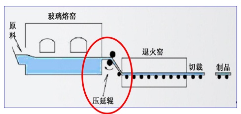 1、玻璃在兩個(gè)壓延輥的擠壓作用下擠出成型