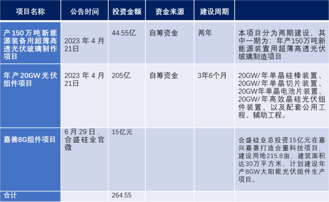 合盛說的比做的更多的光伏大項(xiàng)目,還有光伏玻璃和光伏組件一體化項(xiàng)目。