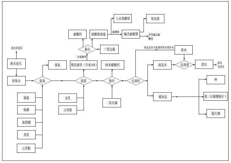 該項(xiàng)目是三友化工發(fā)展海洋經(jīng)濟(jì)的重要一環(huán),碳酸鈣是濃海水綜合利用副產(chǎn)品之一。據(jù)了解,三友化工研發(fā)了一系列從濃海水中提取化學(xué)元素的方法,包括濃海水通過(guò)提溴系統(tǒng)、提鎂系統(tǒng)、提鈣系統(tǒng)、濃縮制液體鹽系統(tǒng)、液體鹽提鉀系統(tǒng)、液體鹽提鋰系統(tǒng)、液體鹽濃縮制鹽系統(tǒng)和二氧化碳儲(chǔ)存系統(tǒng)進(jìn)行各化學(xué)元素的提取。其中,提鈣系統(tǒng)利用超重力反應(yīng)器加入二氧化碳碳化,經(jīng)過(guò)濾制備得到超細(xì)碳酸鈣產(chǎn)品和除鈣后濃海水。