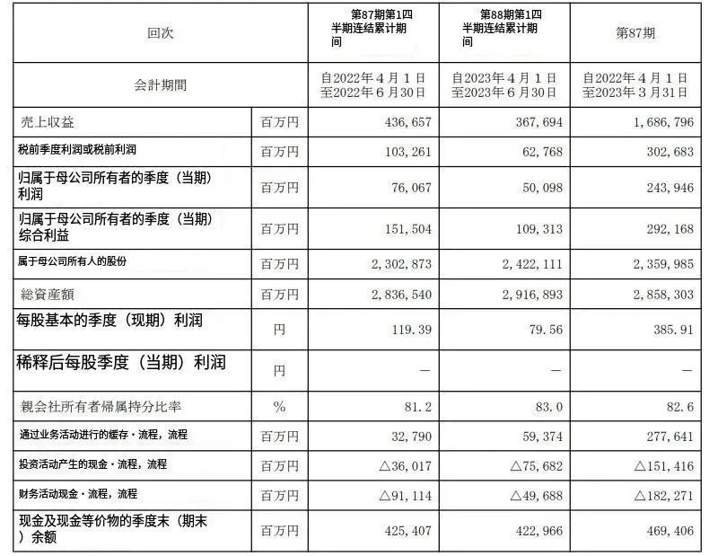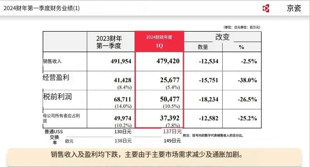 京瓷營收 4794 億日元,同比下降 2.5%;
