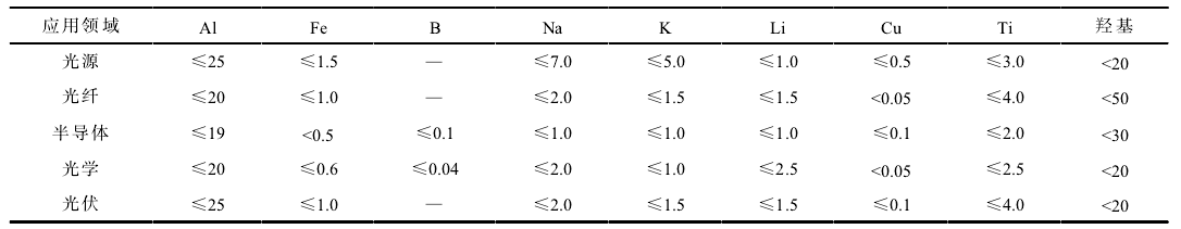 不同應(yīng)用領(lǐng)域的熔融石英玻璃雜質(zhì)和羥基含量要求