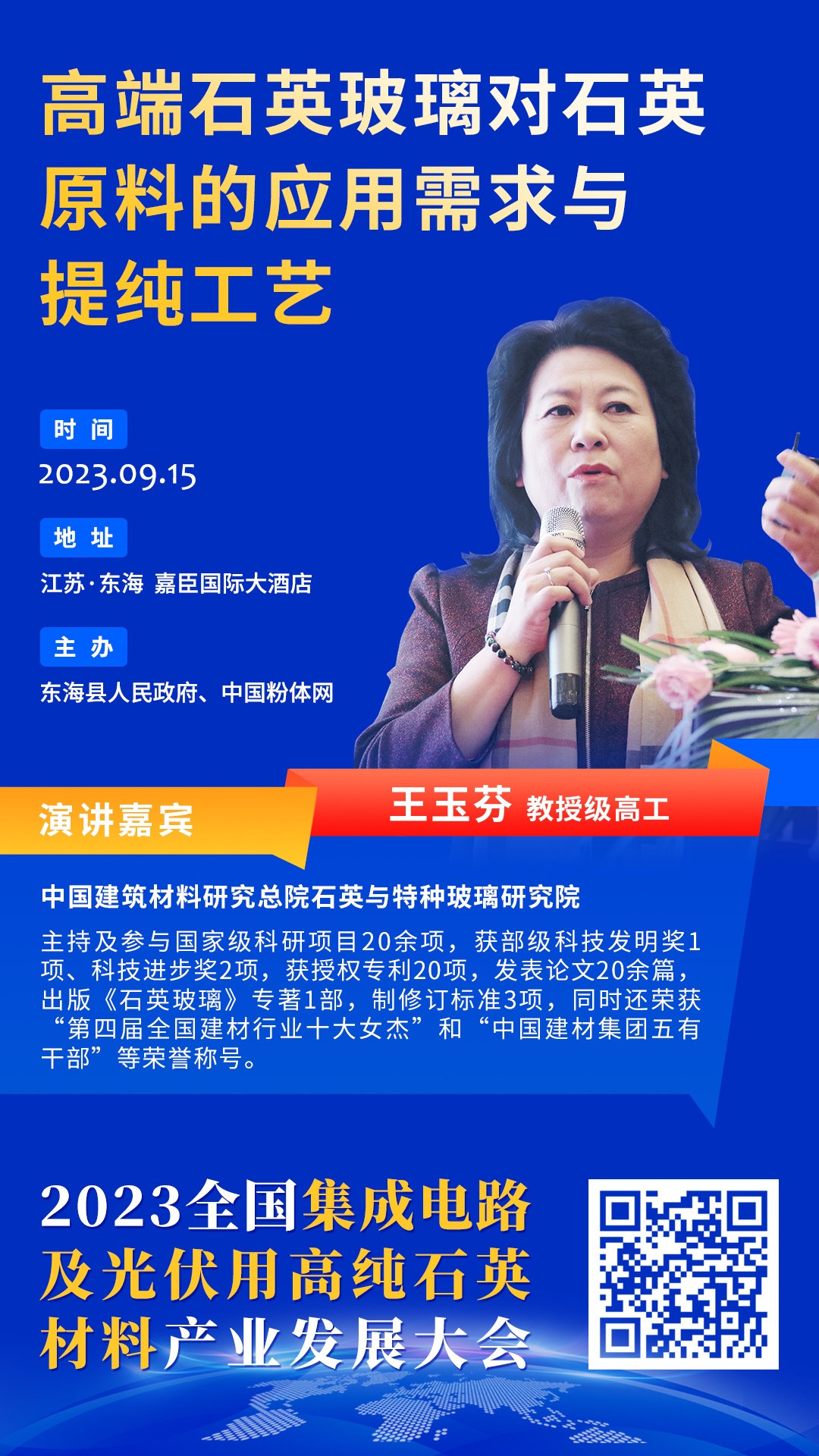 2023年9月15日,中國(guó)粉體網(wǎng)聯(lián)合東海縣人民政府將于東?h嘉臣國(guó)際大酒店舉辦“2023全國(guó)集成電路及光伏用高純石英材料產(chǎn)業(yè)發(fā)展大會(huì)”,屆時(shí),來(lái)自中國(guó)建筑材料科學(xué)研究總院石英與特種玻璃研究院的教授級(jí)高工王玉芬將作《高端石英玻璃對(duì)石英原料的應(yīng)用需求與提純工藝》報(bào)告。王教授曾任中國(guó)建筑材料科學(xué)研究總院石英與特種玻璃研究院院長(zhǎng),主持及參與國(guó)家級(jí)科研項(xiàng)目20余項(xiàng),獲部級(jí)科技發(fā)明獎(jiǎng)1項(xiàng)、科技進(jìn)步獎(jiǎng)2項(xiàng),獲授權(quán)專利20項(xiàng),發(fā)表論文20余篇,出版《石英玻璃》專著1部,制修訂標(biāo)準(zhǔn)3項(xiàng),同時(shí)還榮獲“第四屆全國(guó)建材行業(yè)十大女杰”和“中國(guó)建材集團(tuán)五有干部”等榮譽(yù)稱號(hào)。