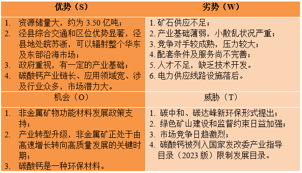 宣城涇縣碳酸鈣產(chǎn)業(yè)發(fā)展SWOT分析