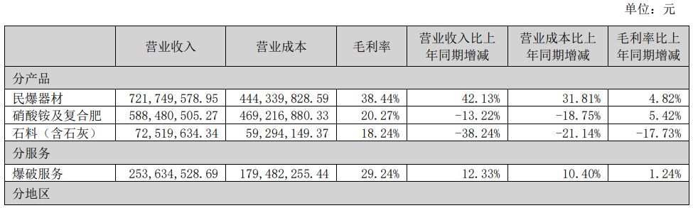 凱龍股份主營業(yè)務(wù)為民用爆破器材、硝酸銨及復(fù)合肥、納米碳酸鈣及石材產(chǎn)品的生產(chǎn)和銷售,并提供爆破服務(wù)。2023年上半年公司實(shí)現(xiàn)營業(yè)收入1,711,351,557.41元,同比增加5.05%;歸屬于上市公司股東的凈利潤約111,998,840.00元,同比減少6.99%。