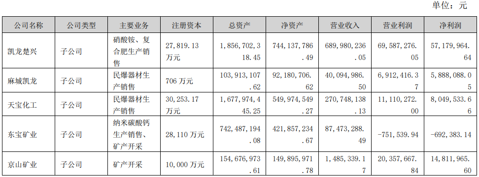 負(fù)責(zé)納米碳酸鈣生產(chǎn)銷售、礦產(chǎn)開采業(yè)務(wù)的東寶礦業(yè)本期實(shí)現(xiàn)營業(yè)收入87,473,288.49元,凈利潤-692,383.14元。