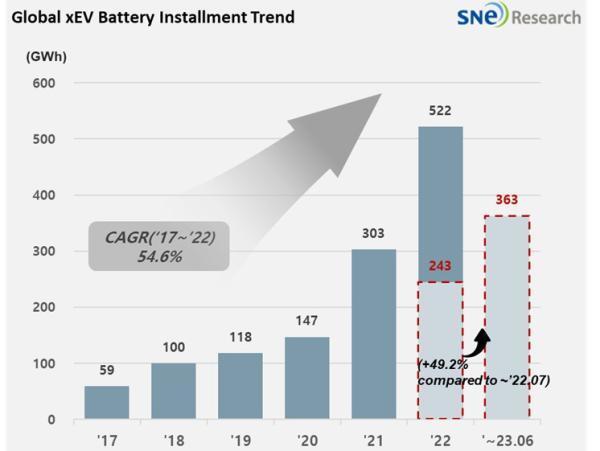 LG新能源則是受到特斯拉MODEL3/Y,大眾ID.3/4、福特Mustang Mach-E等全球暢銷車型的銷售利好,在韓國(guó)三家公司中創(chuàng)下最高增長(zhǎng)率。預(yù)計(jì)搭載LG新能源電池的現(xiàn)代IONIQ6和科納(SX2)的海外銷售將會(huì)擴(kuò)大,因此預(yù)計(jì)今后LG能源解決方案的增長(zhǎng)趨勢(shì)將會(huì)持續(xù)下去。