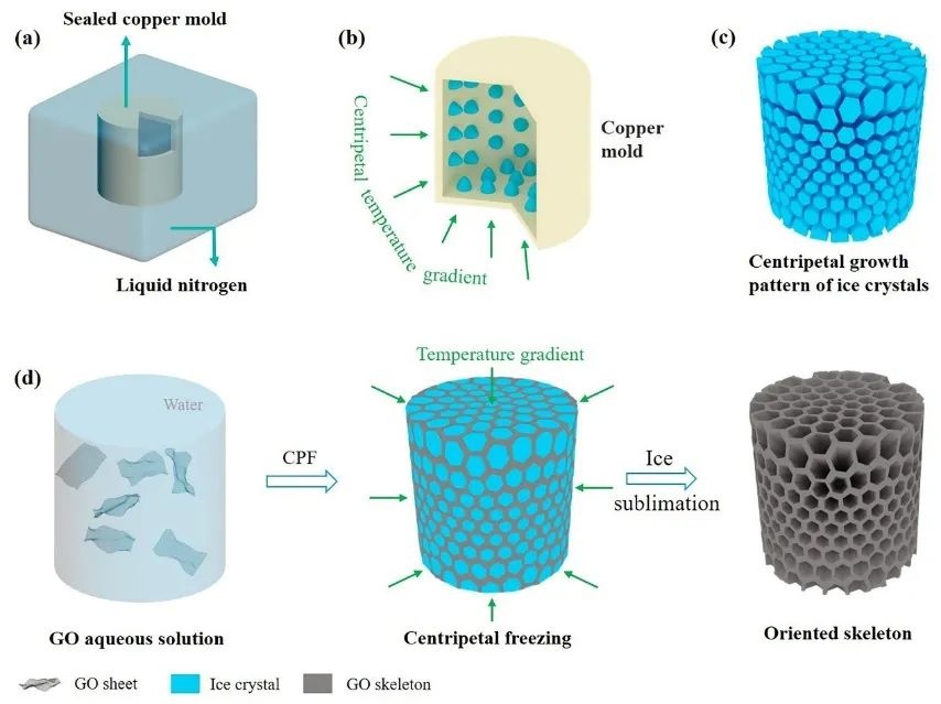 向心冷凍制備向心石墨烯氣凝膠示意圖